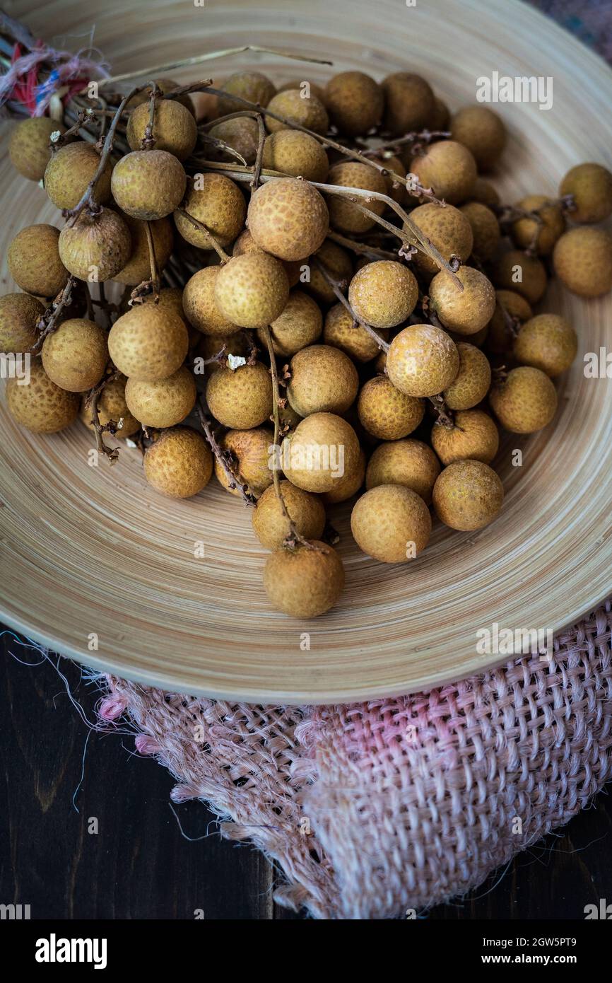 Fresh Longan Or Mata Kucing On A Wooden Plate Selected Focus Stock Photo Alamy